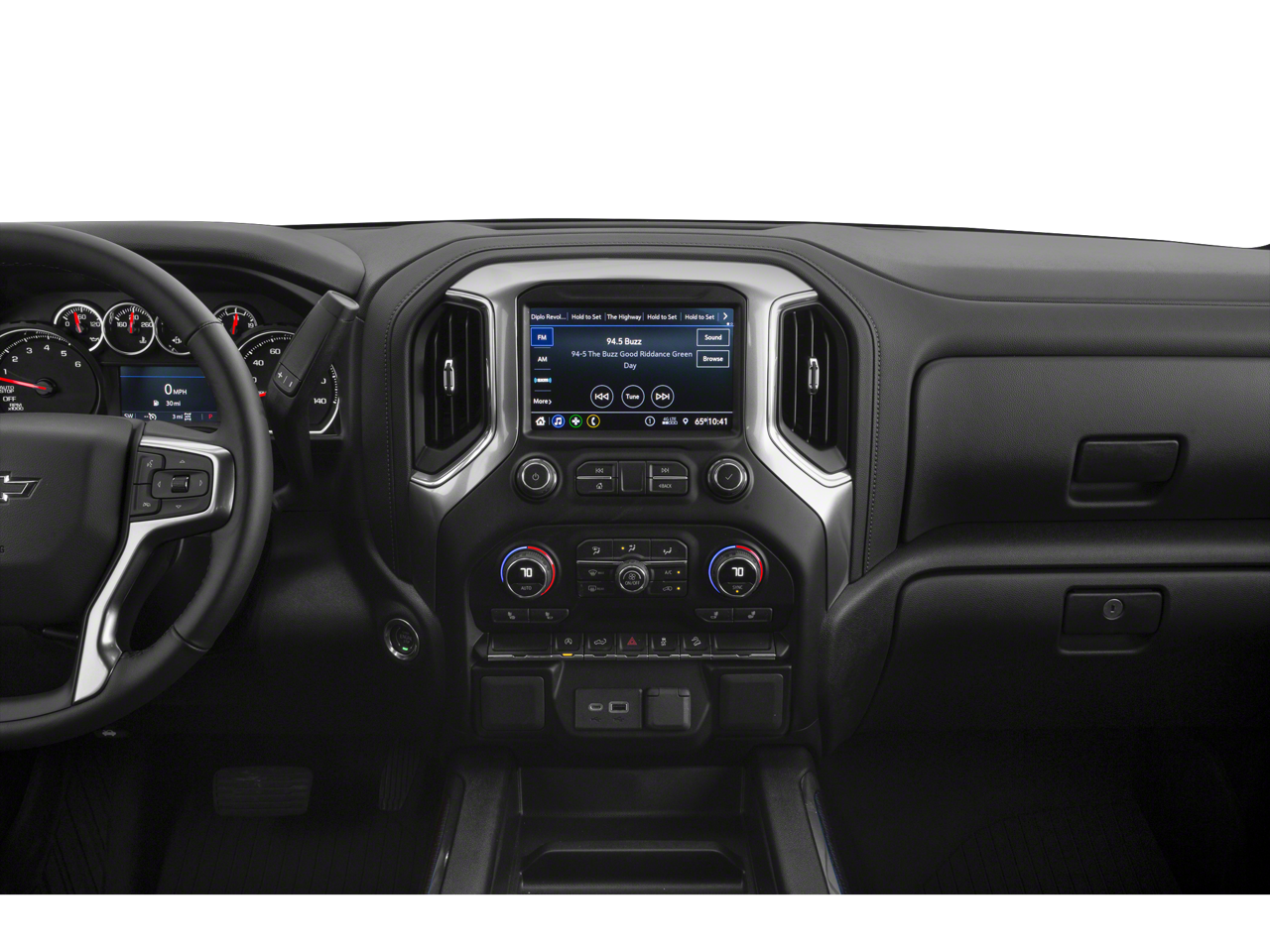 Convenience Package: Manual Tilt/telescoping Steering Column; Cloth Seat Trim; Heated Steering Wheel; 10-Way Power Driver Seat with Lumbar; Floor Mounted Center Console; Dual-Zone Automatic Climate Control; Heated Driver and Front Outboard Passenger Seats; Cloth Rear Seat with Storage Package; Front Bucket Seats. Dark Essentials Package: Black Name Plates; Black Name Plates; Black Tailgate CHEVROLET Lettering. Preferred Equipment Group 2LT: LED Cargo Area Lighting; Rear Vision Camera; Bluetooth® For Phone; Remote Vehicle Starter System; 2 USB Ports (first Row); Electric Rear-Window Defogger; 5.3L EcoTec3 V8 Engine; Theft Deterrent System (unauthorized Entry); 170 Amp Alternator; Auxiliary External Transmission Oil Cooler; LT275/65R18C MT BW Tires; Compass; 4.2" Diagonal Color Display Driver Info Center; Electrical Lock Control Steering Column; Trailering Package; Standard Tailgate; Front LED Fog Lamps; Suspension Package; Steering Wheel Audio Controls; Color-Keyed Carpeting Floor Covering; OnStar and Chevrolet Connected Services Capable; Power Front Windows with Passenger Express Down; 2-Speed Transfer Case; Deep-Tinted Glass; 6-Speaker Audio System; All-Weather Floor Liner; High Gloss Black Mirror C
